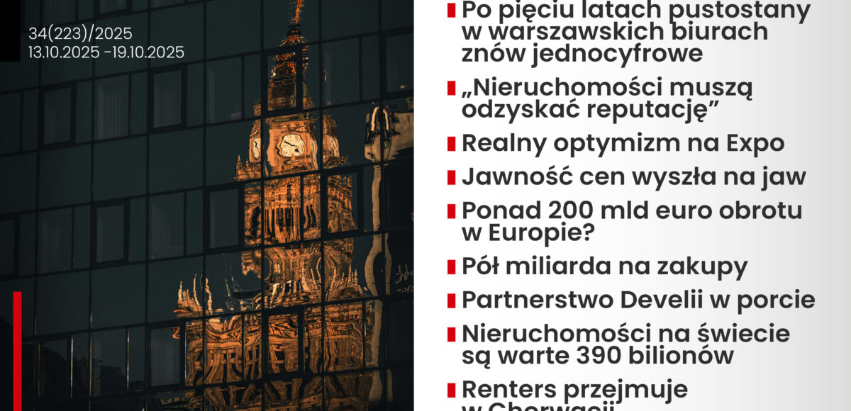 Na dalszych stronach z kolei o uwagę zabiega kilkadziesiąt tekstów z najnowszego „Property Insidera”. Zapraszam więc do lektury. A już za tydzień dodatek „Polskie Niebotyki 2025”. Zebraliśmy kilkadziesiąt projektów planowanych na kolejne pół dekady, do tego wywiady, analizy i komentarze. Zapraszam do współpracy.